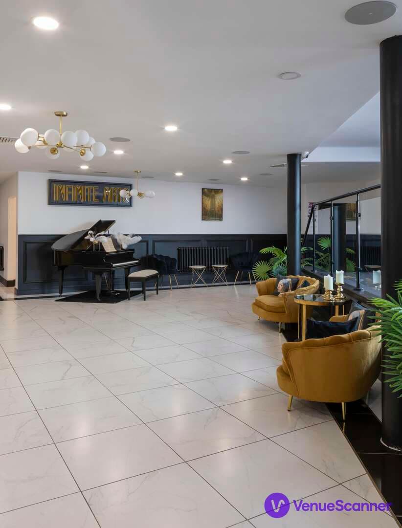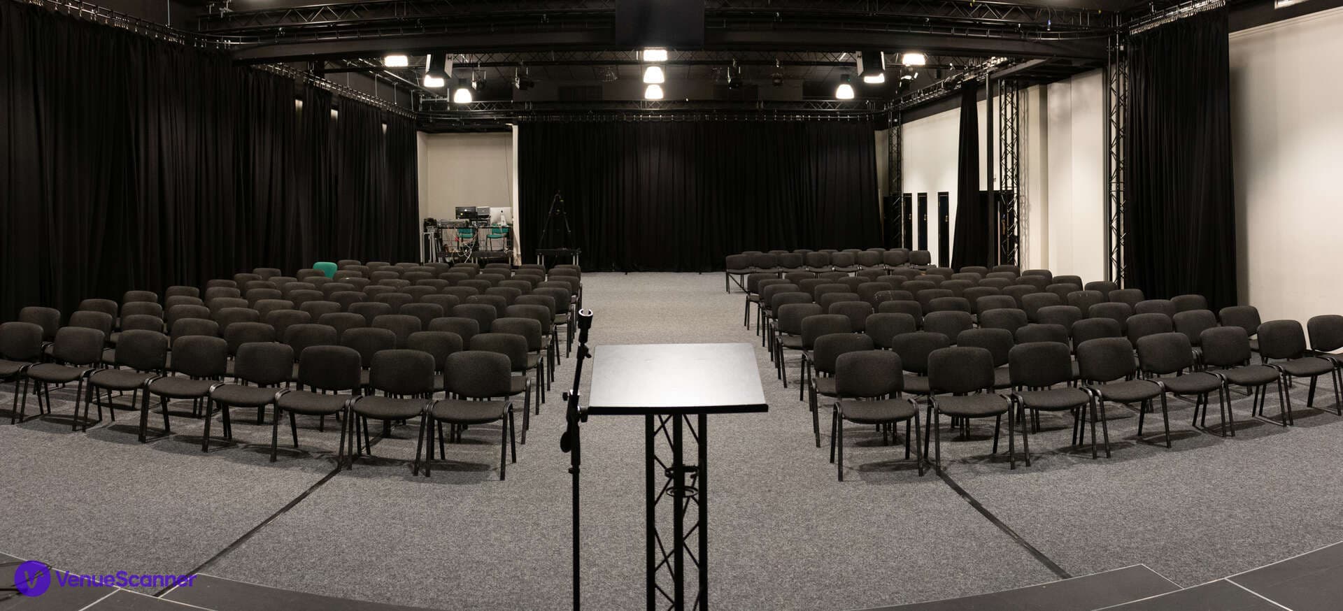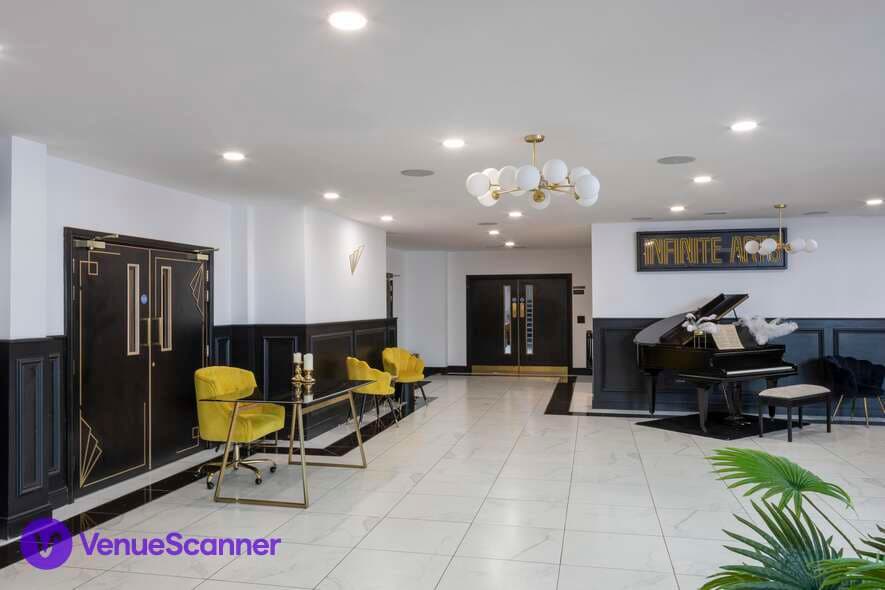 The combined studios are a professional and adaptable space ideal for corporate meetings, seminars, and presentations. This space can comfortably accommodate medium sized audiences, making it perfect for panel discussions, training sessions, and keynote speeches. Each of our two studio spaces measures 13m x 13m and can be used individually, or combined into one large (26m x 13m) venue for larger events. The spacious entrance is tastefully decorated in an Art Deco style and provides an elegant meet-and-greet space in which to gather. The combined studio is completed to a sophisticated specification to meet all your audio/visual needs.