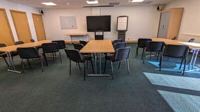 The room comes with a ceiling mounted projector, along with a professional digital sound desk and lights. We have a raised staging area situated at the front of the hall with easy access to our side entry loading bay.