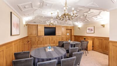 The Houghton Suite is located on the ground floor, with plenty of natural light and elegant wood panelling. It’s the perfect setting for brainstorming sessions, video conferencing, training seminars, product launches and boardroom meetings. Houghton can accommodate up to 25 guests for a boardroom meeting, 50 theatre style and sit-down dining