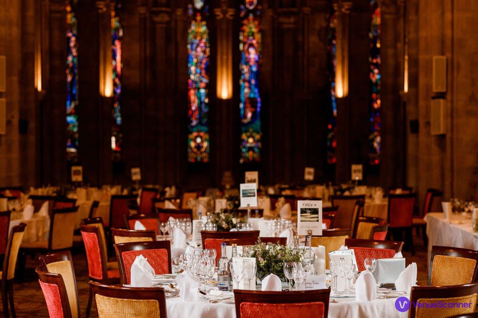 Our most recognisable function room, the Harry Clarke lives in the heart of our converted chapel. Still boasting its stunning stained glass window features and working organ, the room is now home to wedding celebrations and large conferences.