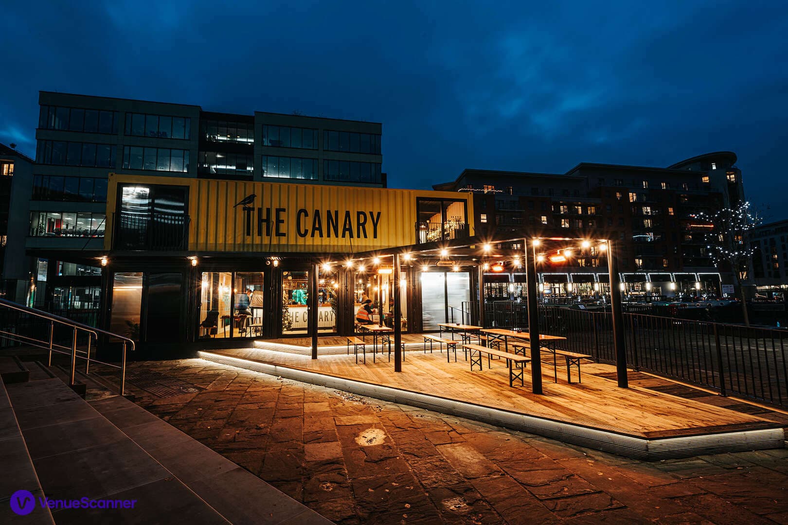 Designed with an industrial yet warm vibe, The Canary offers versatile indoor and outdoor spaces across two levels, including two bars, and heated terraces with waterside views. The Canary is a welcoming hub, perfect for lunchtime meetings, work socials and celebrations.