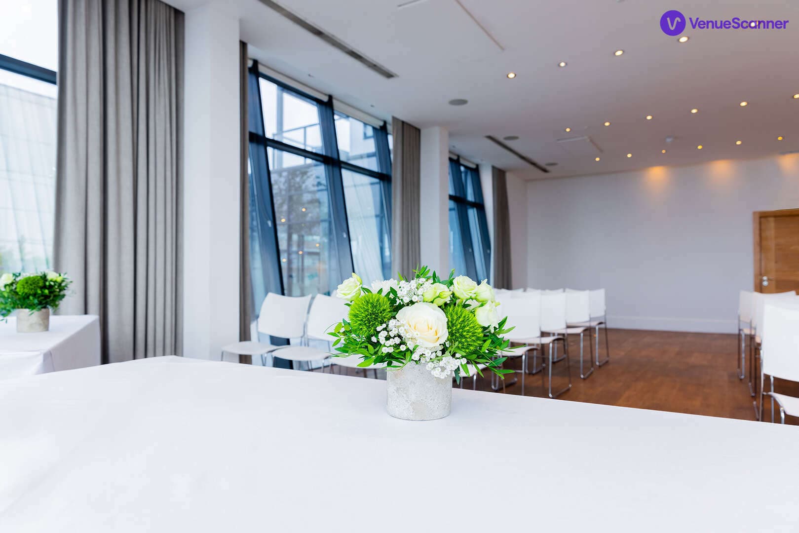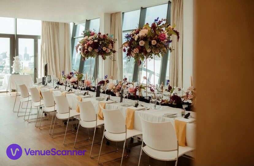 The fifth floor space has private terraces and huge floor to ceiling windows allowing natural light to flood in. The views are outstanding and a wonderful backdrop to your meeting, event or dinner.
