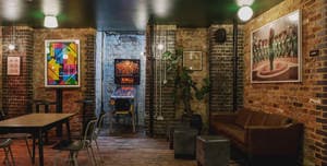 There is space for up to 150 people standing upstairs or 80 for a seated meal. Our mix of modern and retro furnishings combined with the cosy décor gives the space a welcoming feel whilst upholding the effortlessly relaxed bar feel.