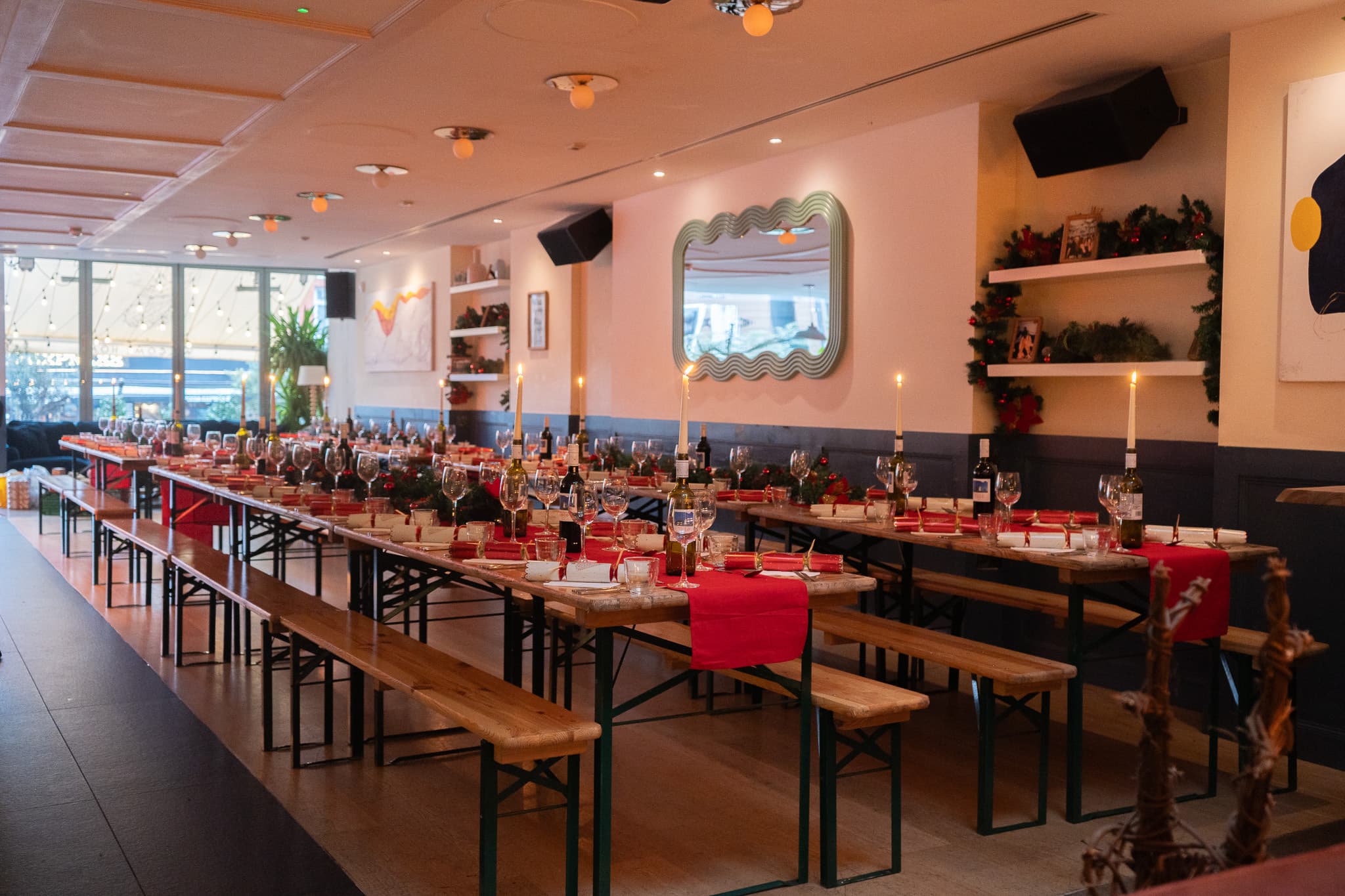 The rooftop transports you to Mediterranean summer nights in the warmer months and is turned into a winter wonderland during the colder season. The rooftop comes with a fully retractable roof and heaters, ideal for the unpredictable British weather, and best of all: it's west-facing, so views of the sunset are truly magical. Your guests can then venture down to the cosy, trendy and intimate downstairs that area consists of characterful shabby-chic mix match furniture, natural light and lots of plants, making the venue perfect for morning gatherings, hot-desking and meetings through to late-night events, work parties and more!