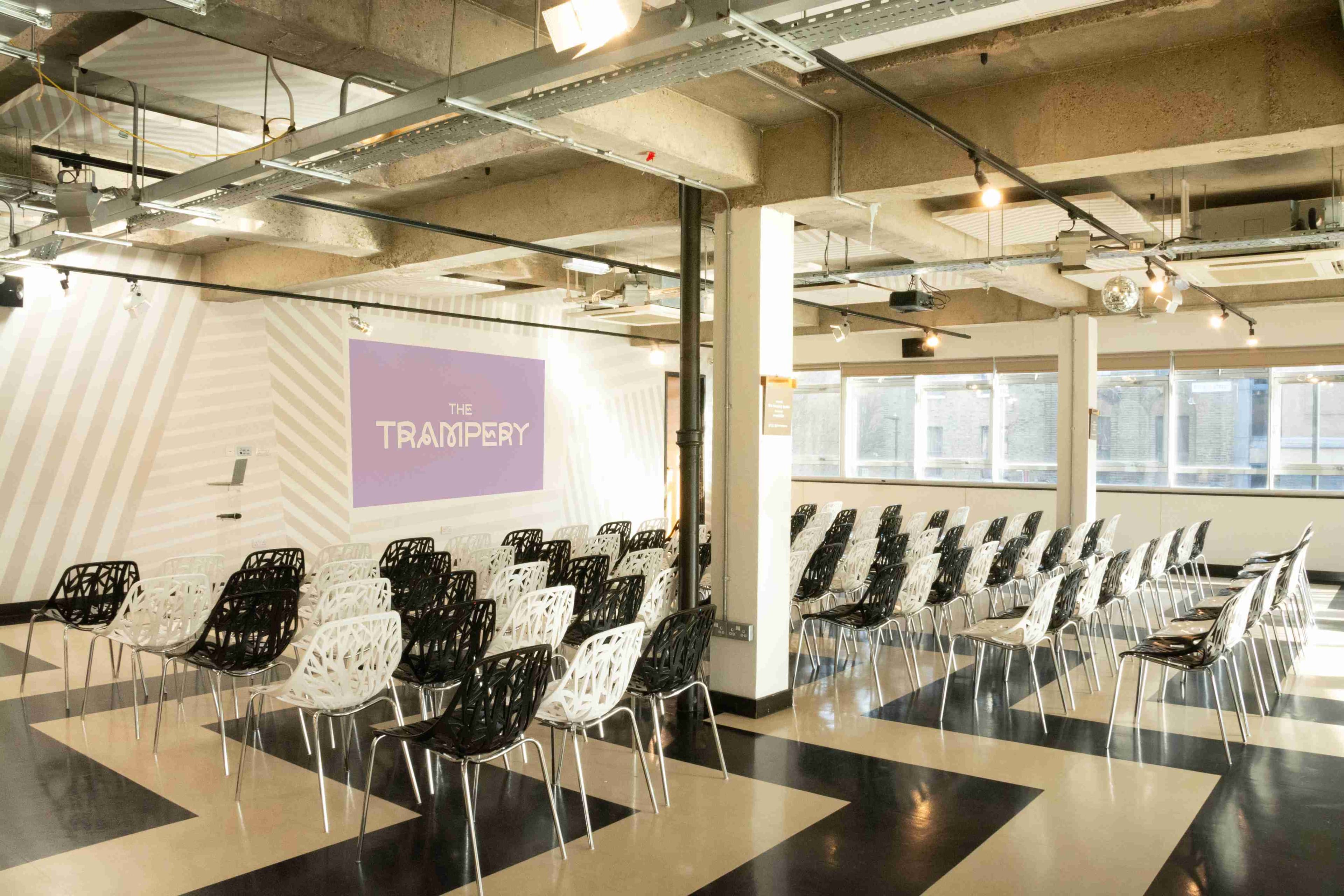 The Trampery Venues is an event space offering a 2000 sq ft blank canvas space along with 4 meeting rooms for events of all sizes. We can accommodate live and hybrid events with a 500Mbps wifi connection and AV in every room.