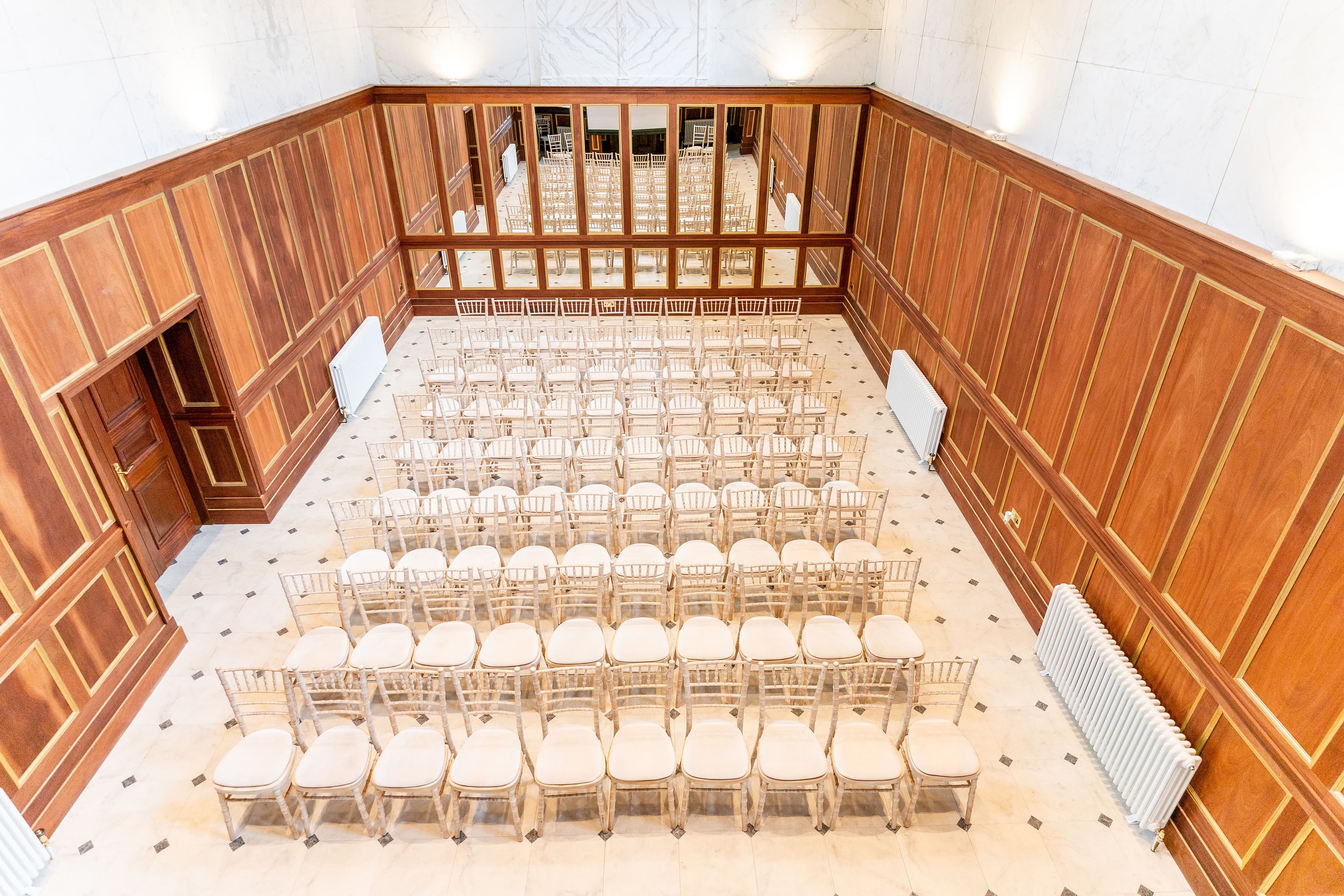 The Italianate former Catholic chapel provides an idyllic backdrop for your civil ceremony complete with an ornate carved wood & gold leaf ceiling. It can accommodate up to 120 guests for your civil ceremony. The Minstrel's Gallery is perfect for musicians as you make your grand entrance from the Italianate gallery and walk down the aisle.