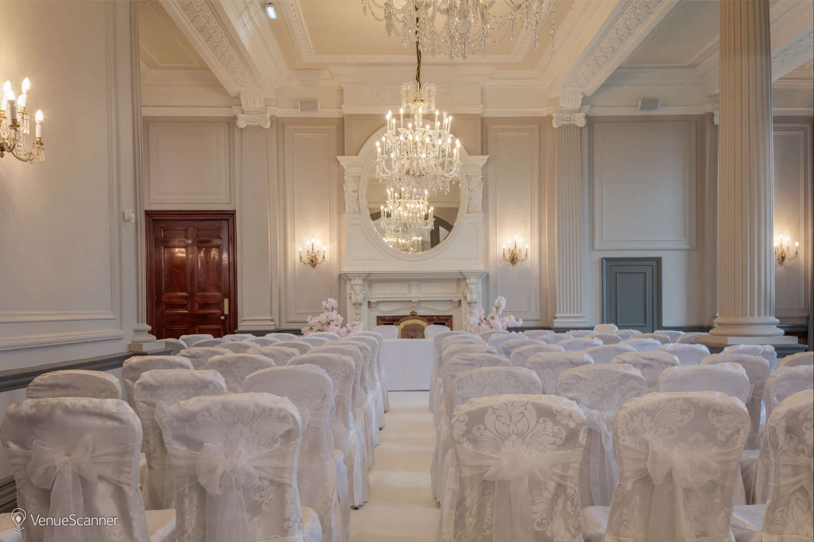Grand function suite located on the ground floor leading from the hotel reception area, with many original features of fireplace and chandeliers.